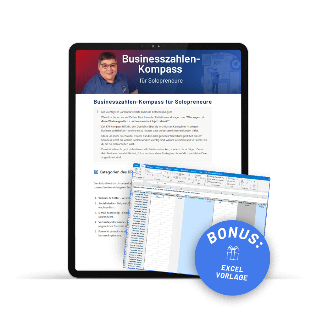 Viele Solopreneure arbeiten hart, aber wissen nicht genau, welche Zahlen ihr Wachstum wirklich steuern. Dabei sind KPIs (Key Performance Indicators) der Schlüssel für bessere Entscheidungen, mehr Umsatz und nachhaltiges Wachstum – ohne Ratespiel und Bauchgefühl.